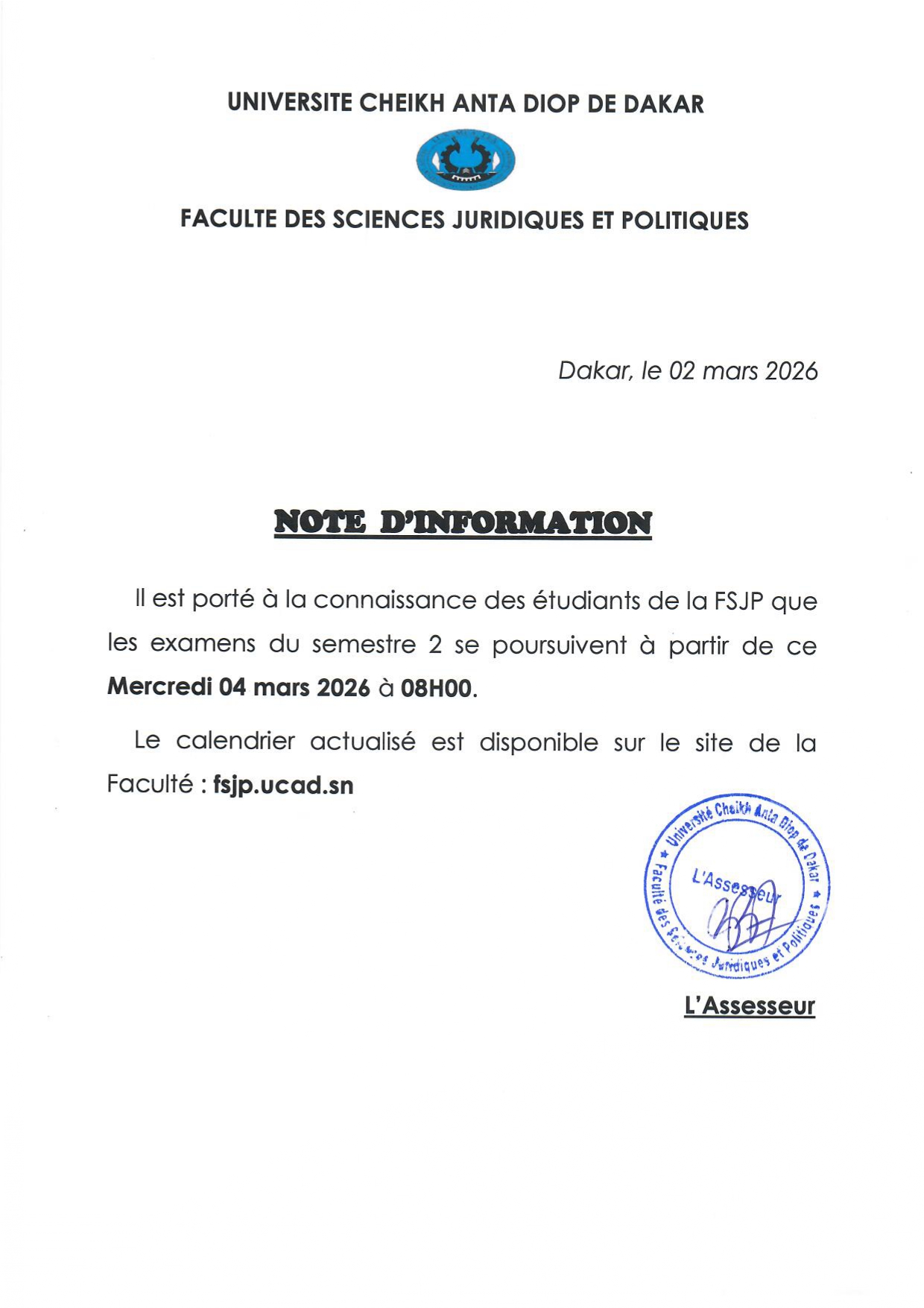 Note d’information aux étudiants relative aux examens